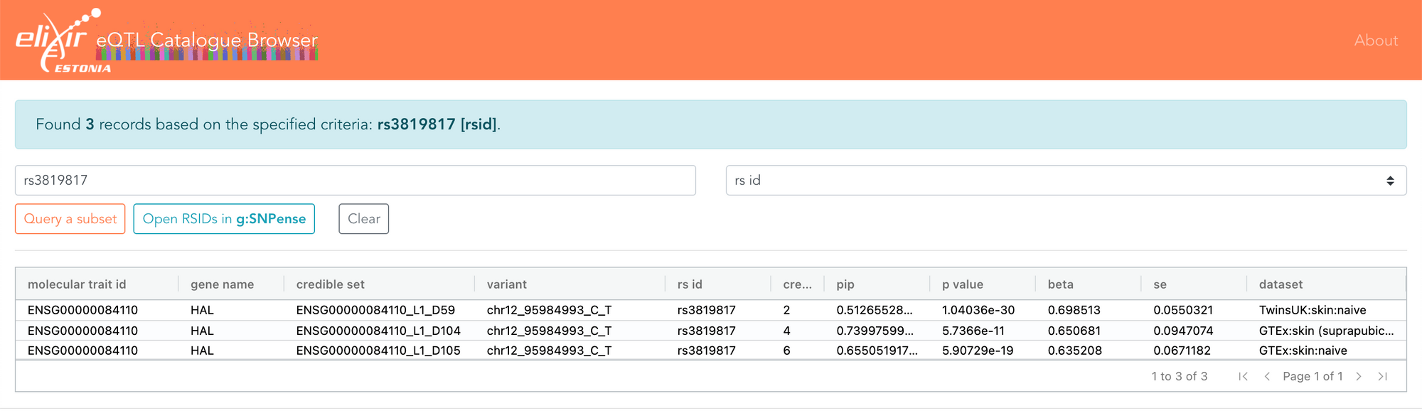 I also recently had a discussion with Eric Fauman about some associations he had found, showing that the effect size of a variant attenuates the further you move away from DNA. Eric gave the example of the rs3819817 variant, an eQTL for the HAL gene. The eQTL Catalogue shows that this only overlaps three fine-mapped credible sets, all of which are eQTLs only for HAL and only in skin. The same data can now also be explored in the FiveX browser.