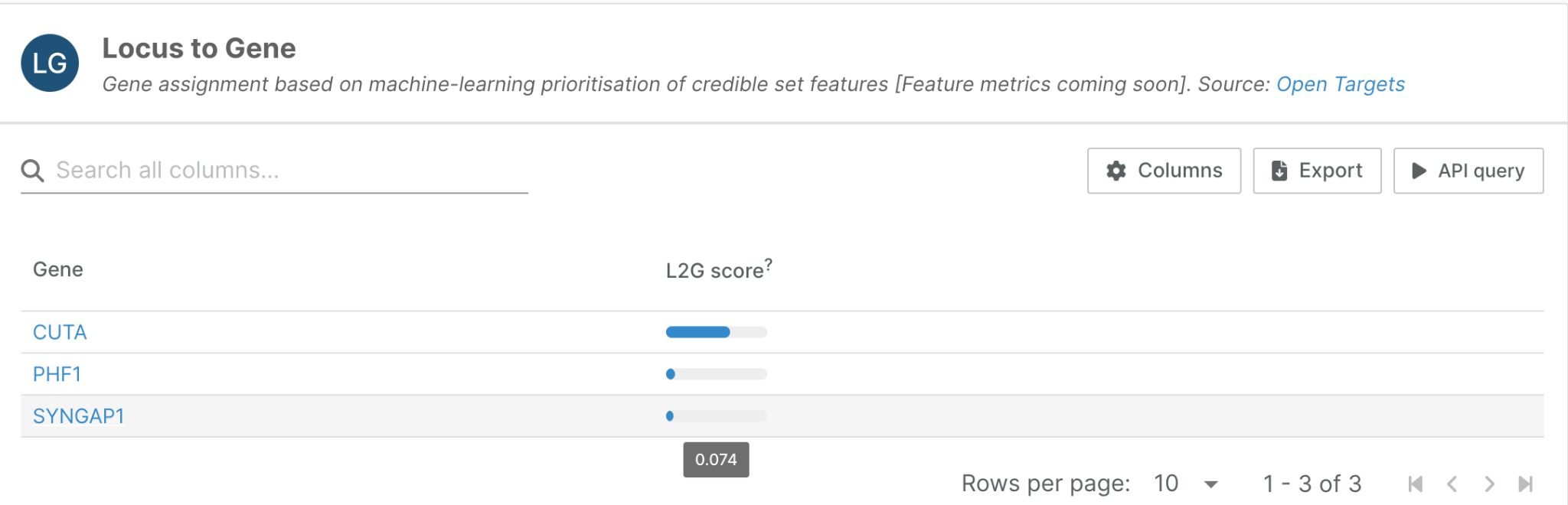 But when we see that CUTA receives a high L2G score of 0.85 while SYNGAP1 scores only 0.07, we might ask: Why is CUTA's score higher? What specific evidence drives this prediction? How can we trust these results?