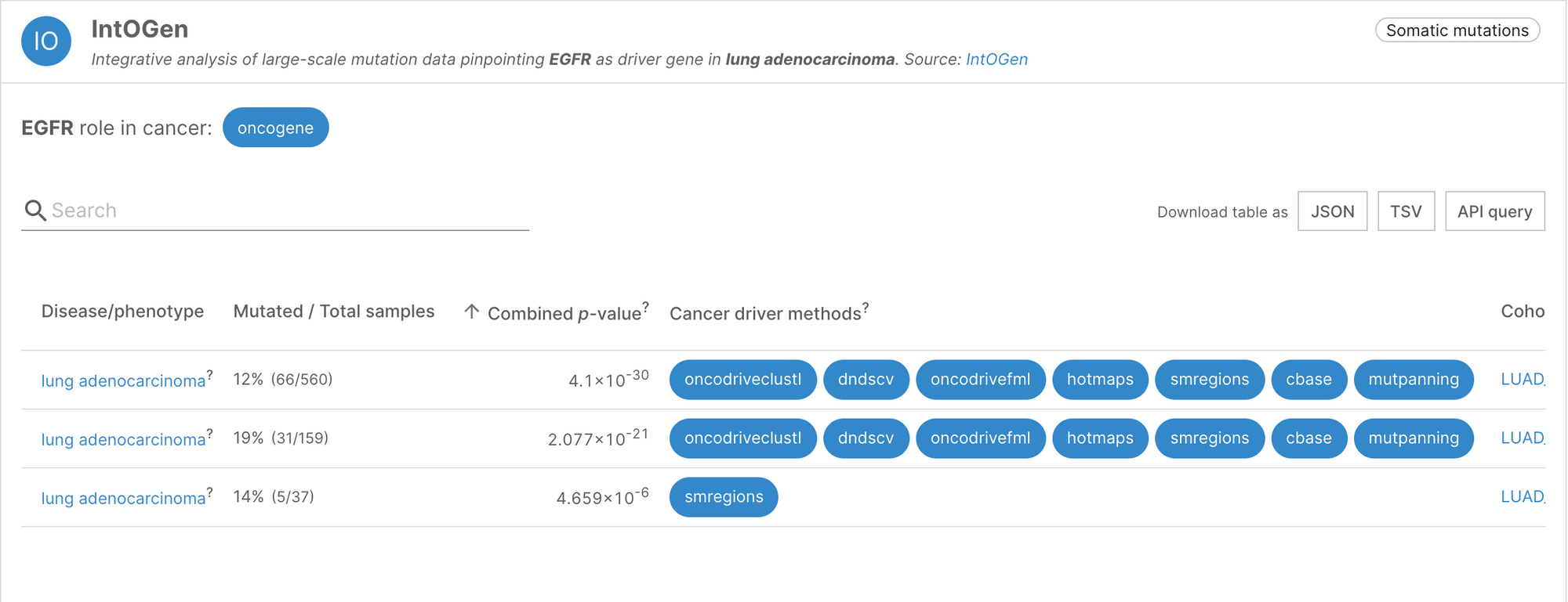 Additionally, one of the features stored by the IntOGen pipeline is the enrichment of mutations in particular domains for every protein and cancer type. These predictions reveal the most likely types of mutation to cause the cancer type, and whether it is conserved. This information is essential for drug design.