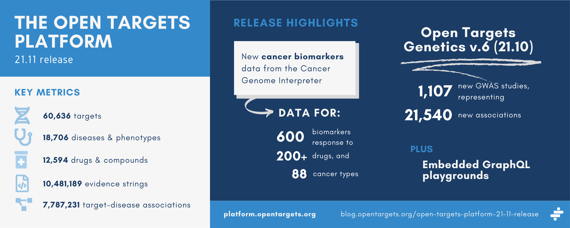 The latest release of the Platform — 21.11 — is now available at platform.opentargets.org.