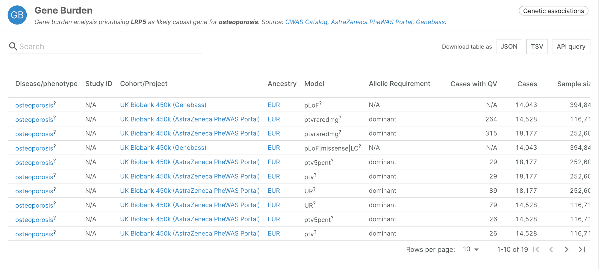 The evidence integrated from Genebass recapitulates known associations such as the link between PCSK9 and hypercholesterolemia, or LRP5 and osteoporosis.