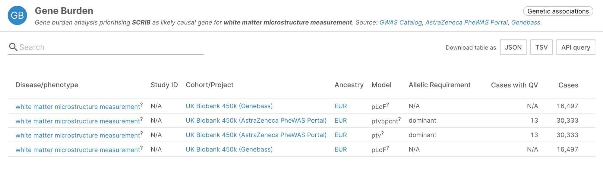 It also includes novel associations, such as SCRIB and white matter microstructure measurement, highlighted by the authors in their recent manuscript (Karczewski, et al., 2022).