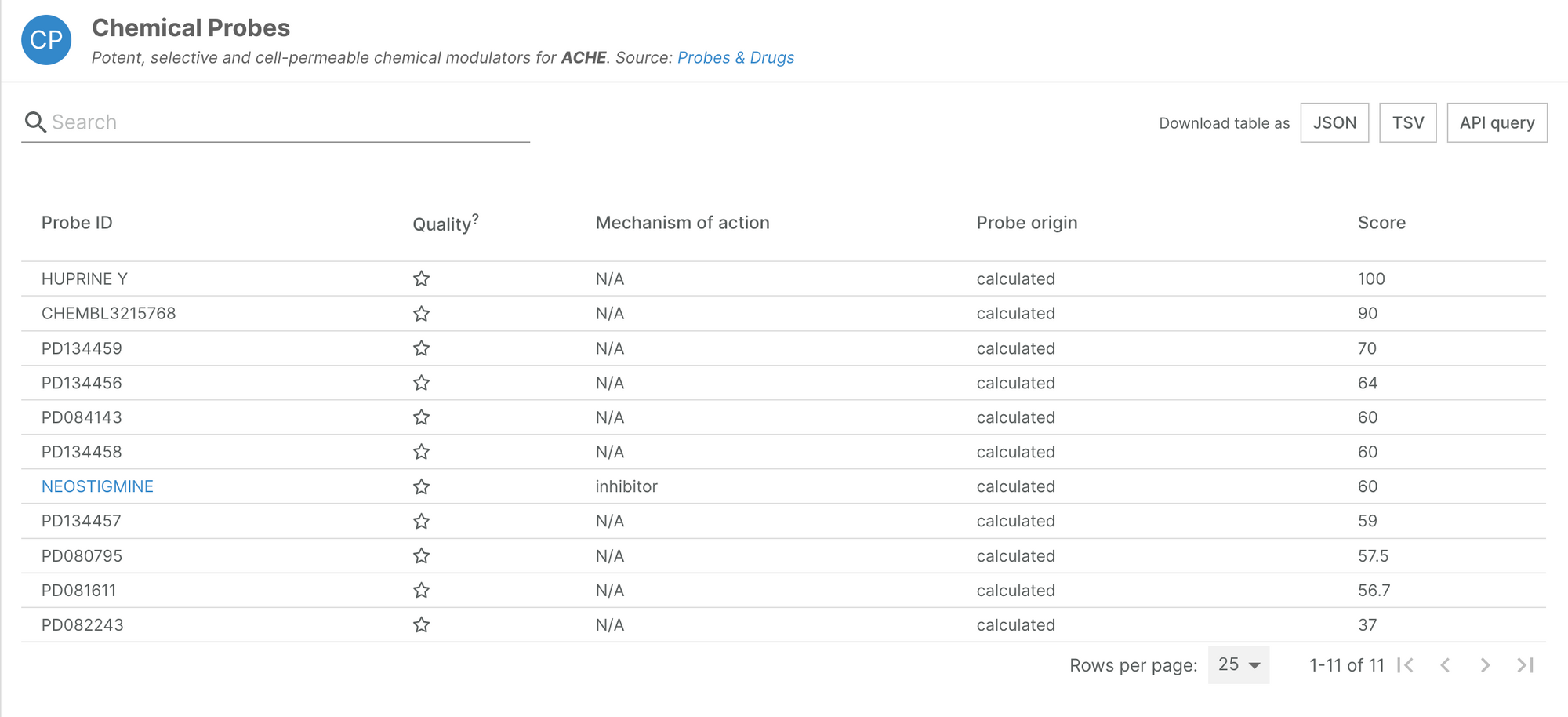 Probes & Drugs is a central hub for chemical biology research, integrating the most relevant probe sources. Information on chemical probes is available to browse on our target annotation pages.