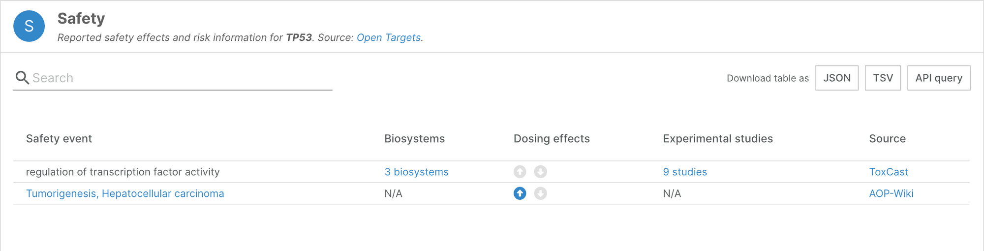 For example, the safety widget for TP53 now includes an additional safety event for tumorigenesis and hepatocellular carcinoma.