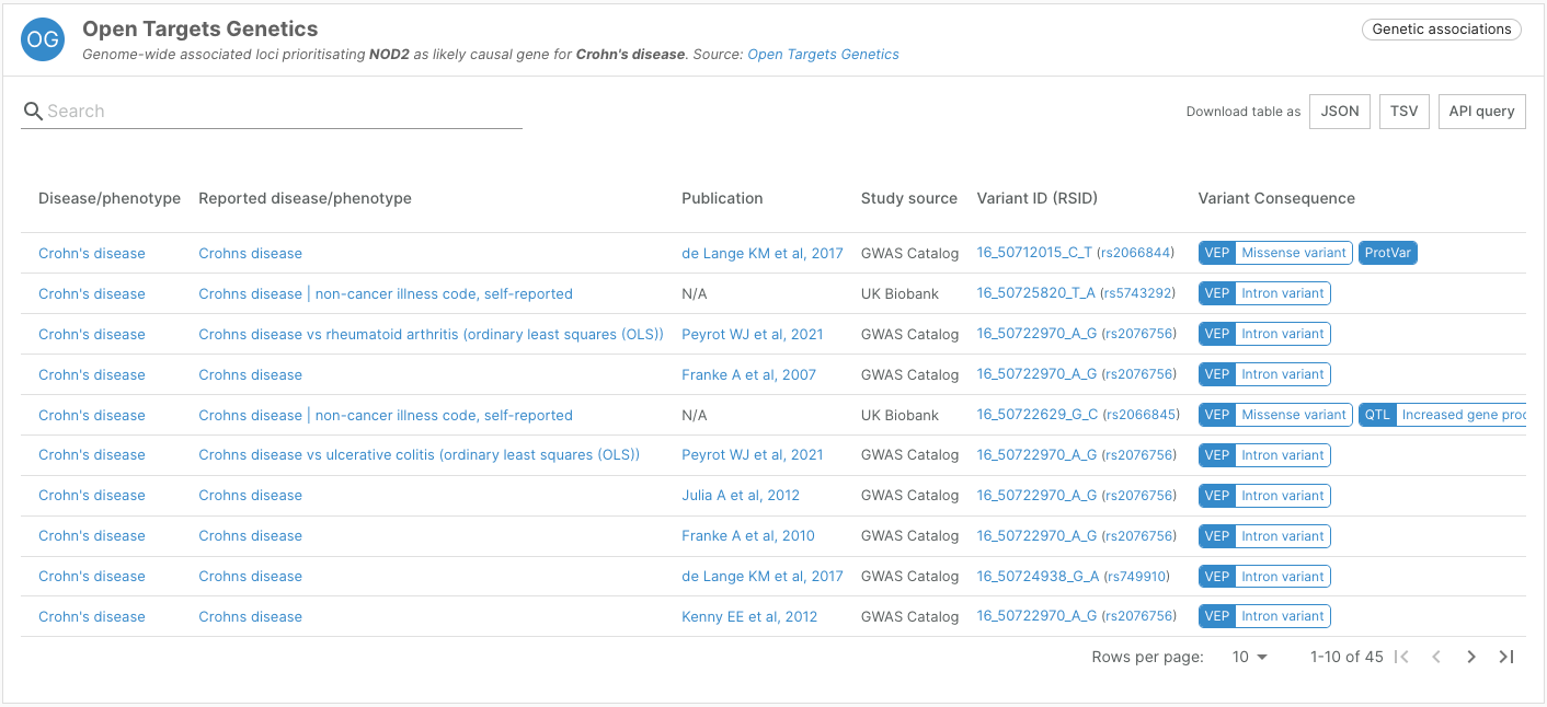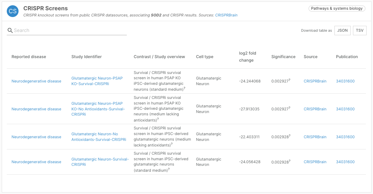 This new target-disease association evidence is presented in a “CRISPR Screens” widget, contributing to our Pathways and Systems Biology data type.
