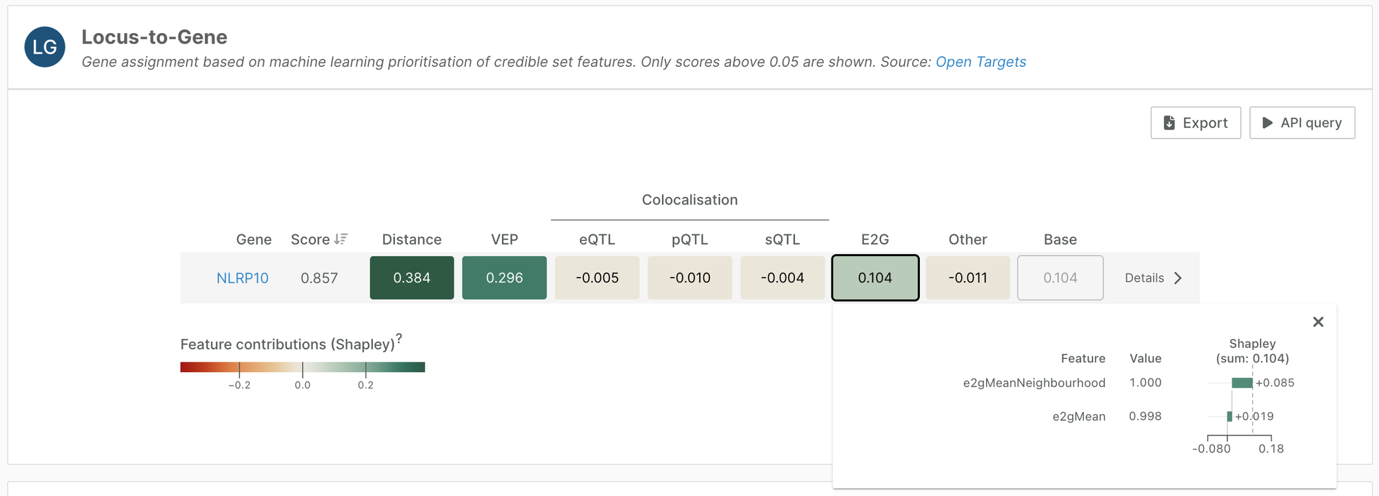 We have used these scores to add two features to our Locus-to-Gene (L2G) machine learning model: e2gMean and e2gNeighbourhoodMean, adding regulatory context to L2G features.